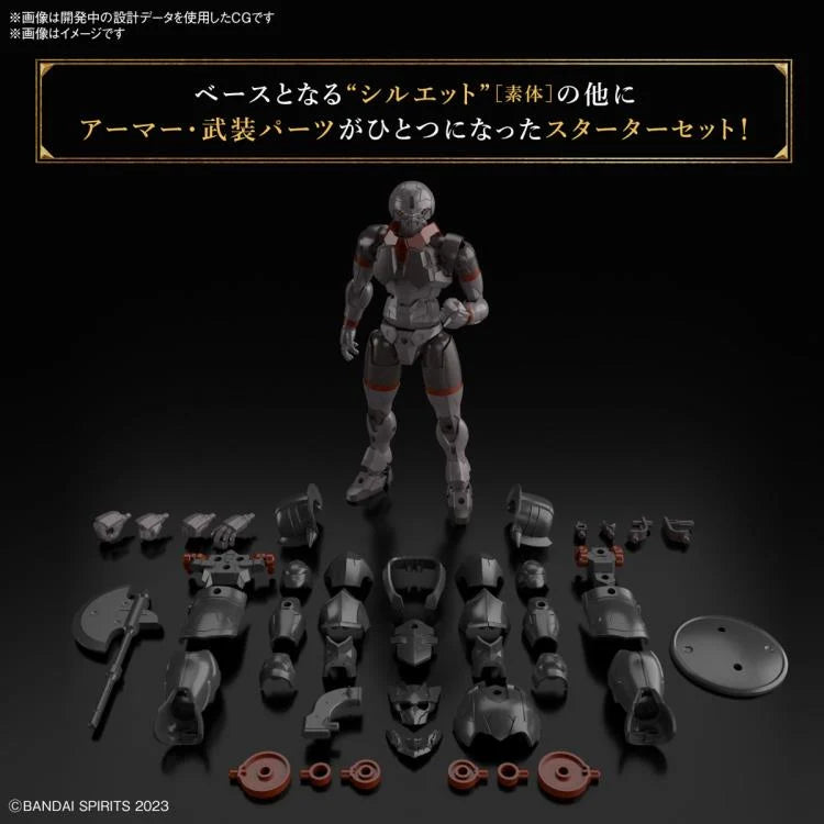 In addition to the base, the "silhouette" body base is a starter set that includes armor and armament parts is also included. Because of the extensive articulation points, human-like flexible actions can be recreated. The movable axis of the chest, torso, and waist and the sliding mechanisms at the base of the waist joint work together to achieve a natural pose.
