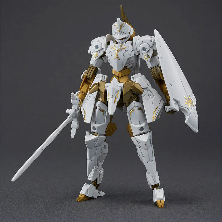 Introducing the ultimate all-in-one model that seamlessly integrates both armor and weapon parts into a single, cohesive design. This versatile kit boasts exceptional range of motion and ensures smooth assembly without any pinching. Featuring exclusive Knight-specification weapons and armor, including a removable head visor, this model stands out with its detailed design.