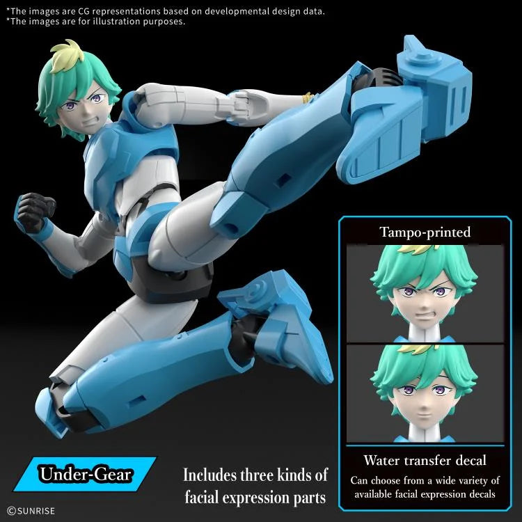 "Musashi" from the TV anime "Yoroi Shinden Samurai Troopers," which will begin airing in January 2026, is recreated in 30MF format! By replacing parts, it is possible to transform from "Under Gear" to "Armor Gear". Hand parts and effects are included to recreate the Armor Gear summoning scene. Two types of face parts with tampo printing are included along with unprinted face parts and water-transfer decals that allow you to choose from a wide variety of facial expressions. The weapon includes the "Water Curtain Shield" and a "Water Curtain Dagger".