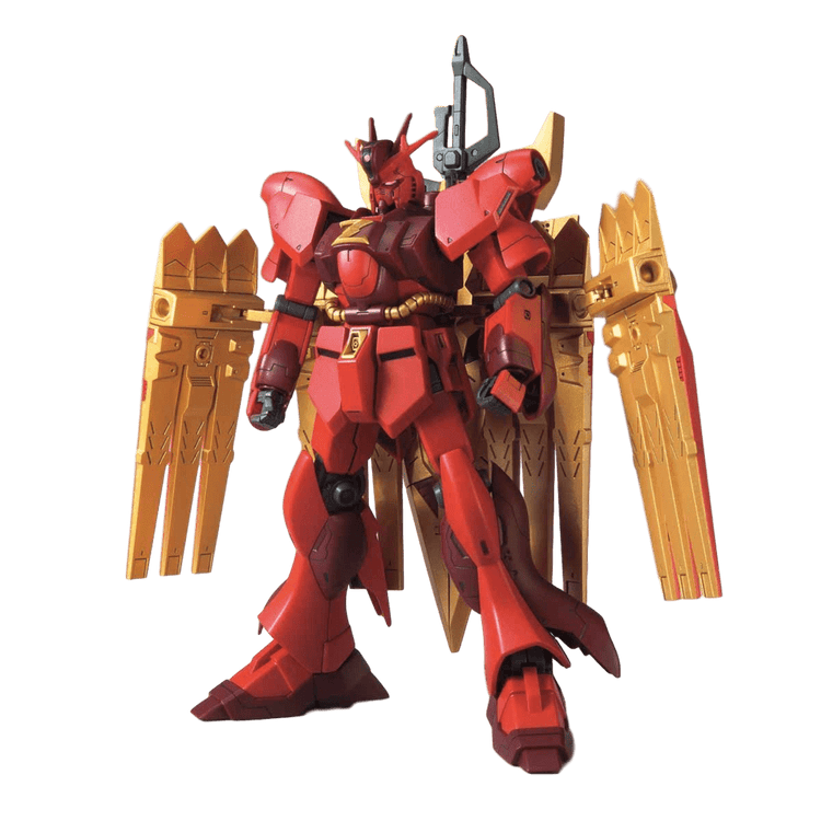 From "Gundam Build Diverse Re:RISE" comes the regal red and gold Nu-Zeon Gundam! He comes equipped with a cape thruster on his back and a massive Zeonic Sword, which can transform from normal mode to bowgun mode, and even beam sword mode. This one's sure to leave an impression in any Gunpla lineup! Includes: Zeonic Sword - Beam blade - Thruster Foil sticker sheet - Special base for the Zeonic Sword (other bases are sold separately). Scale: 1/144 Item Size/Weight: 31.0cm x 20.0cm x 11.3cm / 530g Release Date: Nov 2019
