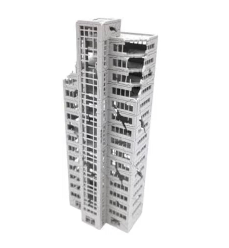 Mycity 1/300 Scale Battle Destroyed Buildings in a mini City Scene