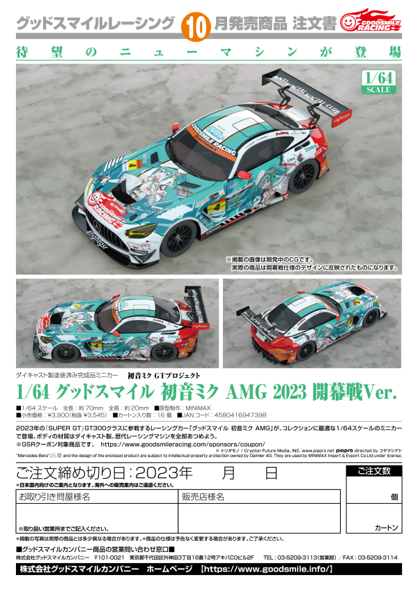 Good Smile Racing Hatsune Miku 1/64 Scale AMG (2022 Season Opening Ver.)
