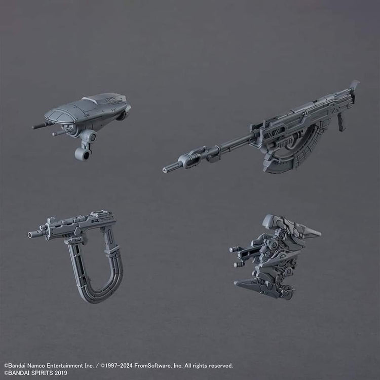 The head, core, arms, and legs each use a common structure for the series and you can enjoy assembling as a plastic model, as seen based on the original source material. A 3mm joint is used for attaching both shoulder weapons and some left-handed weapons, which can be used for various displays.