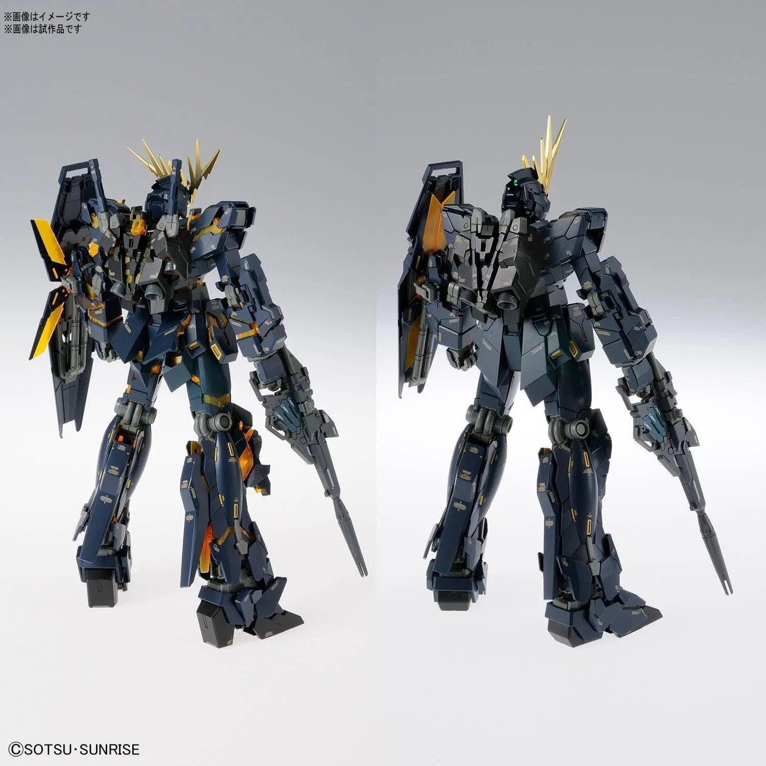 The Master Grade Unicorn Gundam 02 Banshee 02 gets a Ver. Ka release! Its armor can be opened to reveal the inside form, and it comes with its Beam Magnum, shield, two Beam Sabers, the Hyper Bazooka, decals and foil stickers for the markings. Don't miss it! ■ "Unicorn Gundam Unit 2 Banshi" finally rolled out at Ver.Ka! ■ Psycho frame is changed to clear yellow, marking water transfer decal unique if Ver.Ka color matching the molding color comes with! - In addition to Beam · Magnum and shield, armed parts such as Hyper · Bazooka are enriched, too! INCLUDED ACCESSORIES: ■ Beam · Magnum × 1 ■ Shield × 1 ■ Hyper · Bazooka × 1 ■ Beam · saber × 2 CONTENTS: Molded item × 22 ■ foil seal × 1 ■ Water-transfer decal x 1 ■ Instruction manual x 1. Scale: 1/100 Item Size/Weight: 39.0cm x 31.0cm x 9.4cm / 940g Release Date: Mar 2018