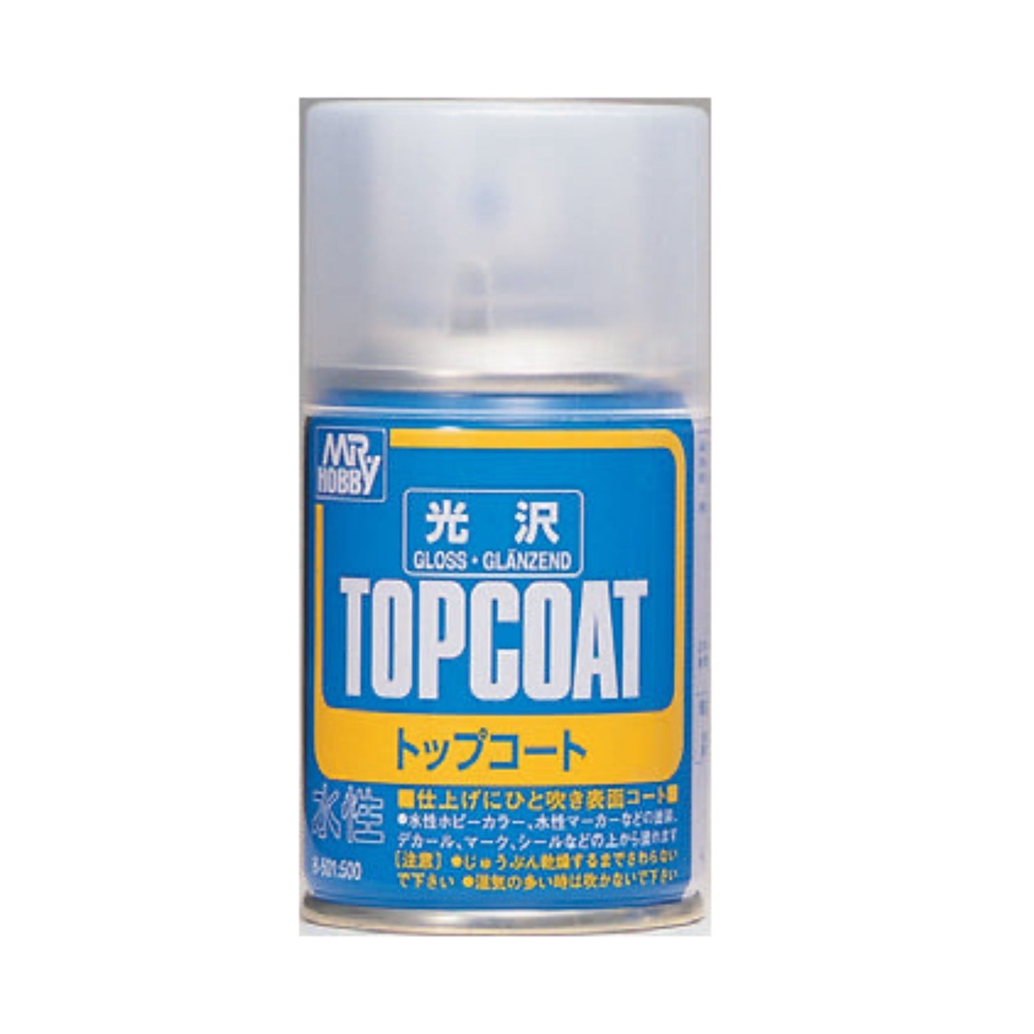 This brings out a realistic felling better than a painted top coat. Mr.TOP COAT can be applied over slide marks(decals) without blemishes. A good way to eliminate differences between the paints and the slide marks is making the model surface smoother. ・Can be applied over Mr. COLOR, water-based hobby colors, and enamel paints. ・Can be used for painting that begins over slide marks. ・Using Mr. COLOR or Mr. SUPER CLEAR over TOPCOAT will cause it to dissolve. ・Just a light application by airbrush is sufficient.