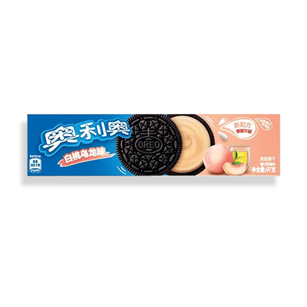 Oreo White Peach Oolang Tea flavor are a limited edition flavor of the iconic Oreo chocolate sandwich cookies. They and a peach-colored cream filling that has a sweet and fruity taste of peach. They are inspired by the popular Japanese ingredients of peach and oolong tea. They are a refreshing and unique treat for Oreo fans. 🍑