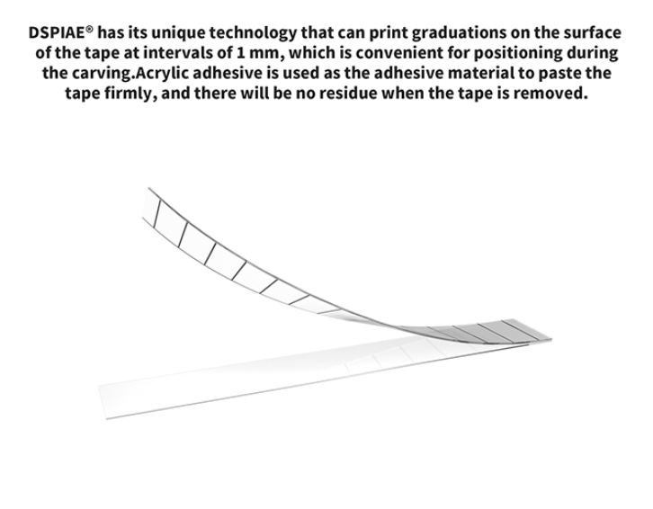 DSPIAE has unique technology that can print graduations on the surface of the tape at intervals of 1mm, which is convenient for positioning during the carving process.