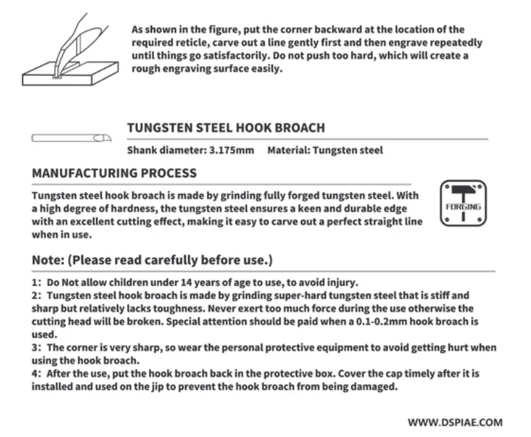 DSPIAE - HC Series Tungsten Steel Hook Broach (Multiple Options)