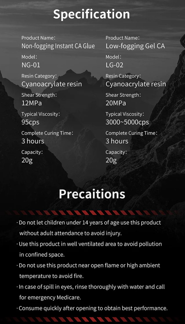- Instant bonding: Non-fogging instant CA, fast bonding, no need to wait