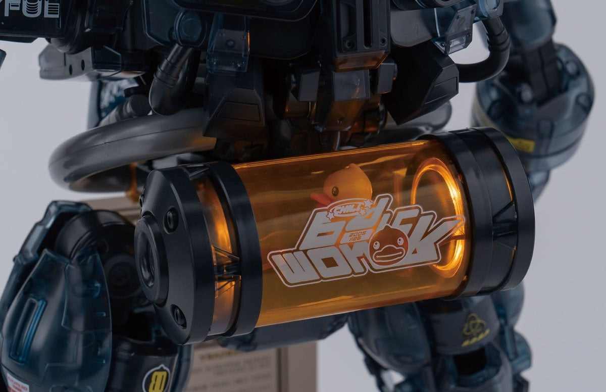 - The duck pilot B.Duck, who loves going to public baths, and his robot armor are now transparent!