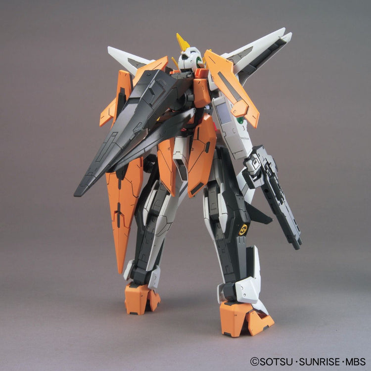 Allelujah Haptism’s GN-003 Gundam Kyrios is the variable Mobile Suit from Gundam 00, and it will be fully poseable and transformable into flight mode in this accurate kit! Features include foldable shoulder antennas, GN shield that separates into a claw, and GN beam submachine gun that can be attached to its right arm. A sheet of foil stickers is included for detail along with two joint parts for use with Bandai’s Action Base 1 to set Gundam Kyrios in mid-air poses or in flight mode.