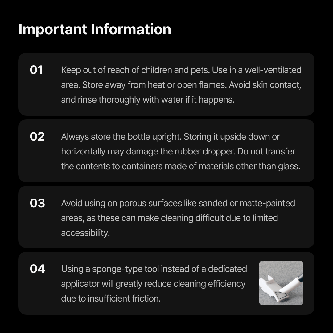 6. Bundled Products: SOLVEN [Dropper / 50ml] x 1, CLEANING SHEET [200ea + Holding Clip] x 1, MICRO SWAB [Double Side / 500ea] x 1