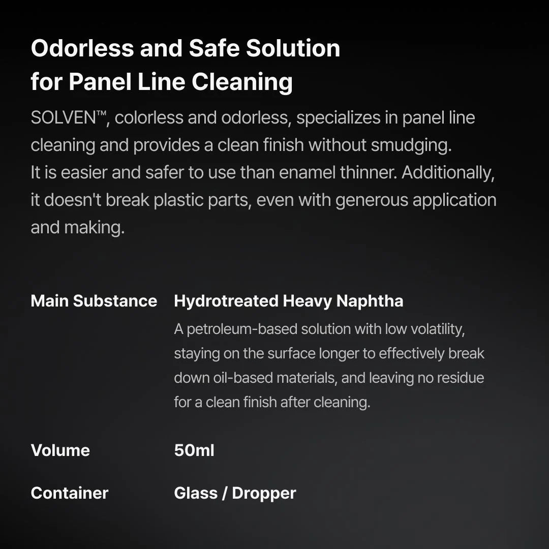 With almost no toxicity and odor, SOLVEN™ is perfect for indoor use without the discomfort often associated with thinners. Additionally, it doesn't break plastic parts, even with generous application, making it an ideal choice for hobbyists seeking a reliable and safer panel line cleaning solution.