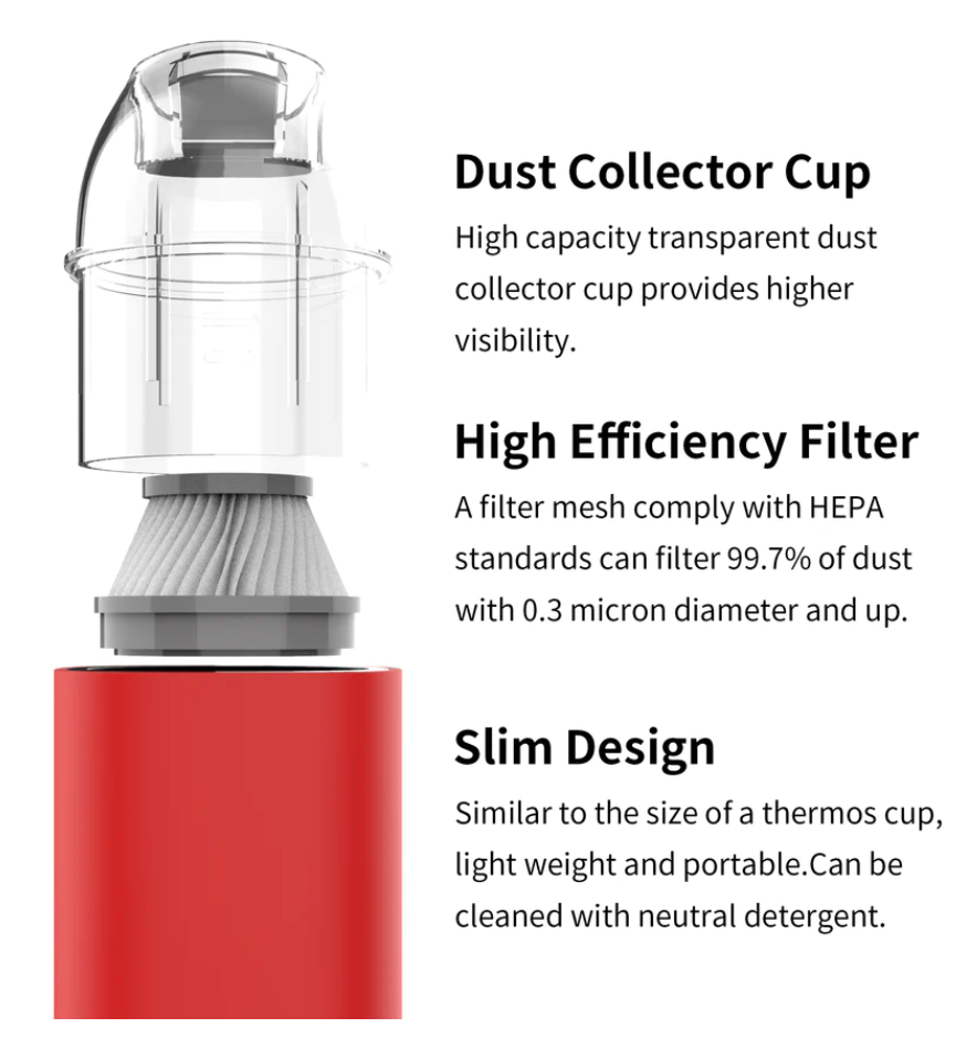 - High efficiency filter mesh: A filter mesh comply with HEPA standards can filter 99.7% of dust with 0.3 micron diameter and up.