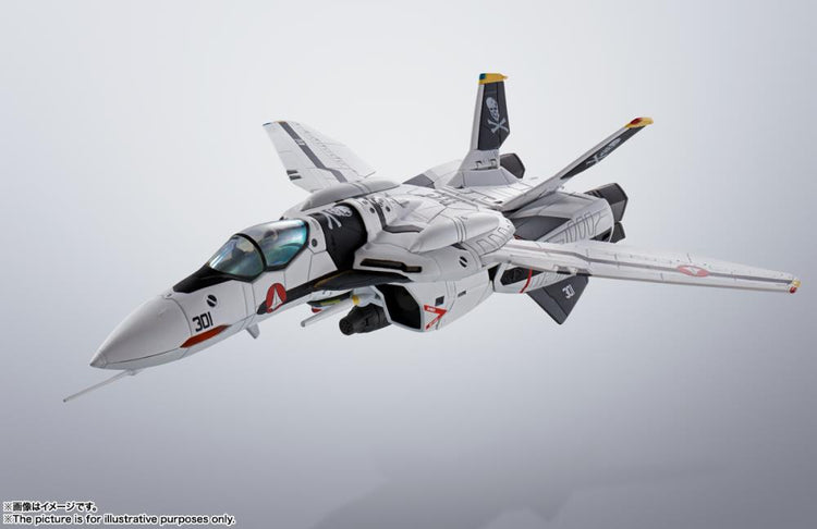 From the 2002 direct-to-video anime "Macross Zero," Roy Focker's VF-0S Phoenix joins the Hi-Metal R series! Featuring a full transformation into all three modes: Fighter, Gerwalk, and Battloid, it also includes FAST packs and air-to-air missiles. Decorated with Focker's personal colors and skull marking!