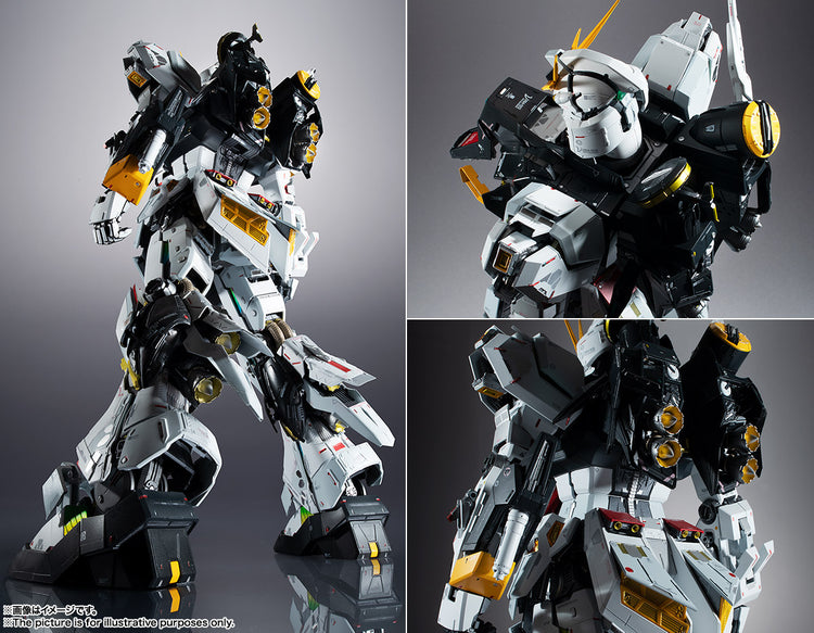 RX-93 v (Nu) Gundam is the featured mobile suit in the classic animated film "Gundam: Char's Counterattack." This Metal Structure figure is the definitive portrayal of this legendary character, created with exquisite detail to bring out the reality of this titanic warrior. Showcasing uncompromisingly rich sculpting, internal structures, and surface finishes, this is an incredibly luxurious reproduction that's sure to please even the most discriminating collector.