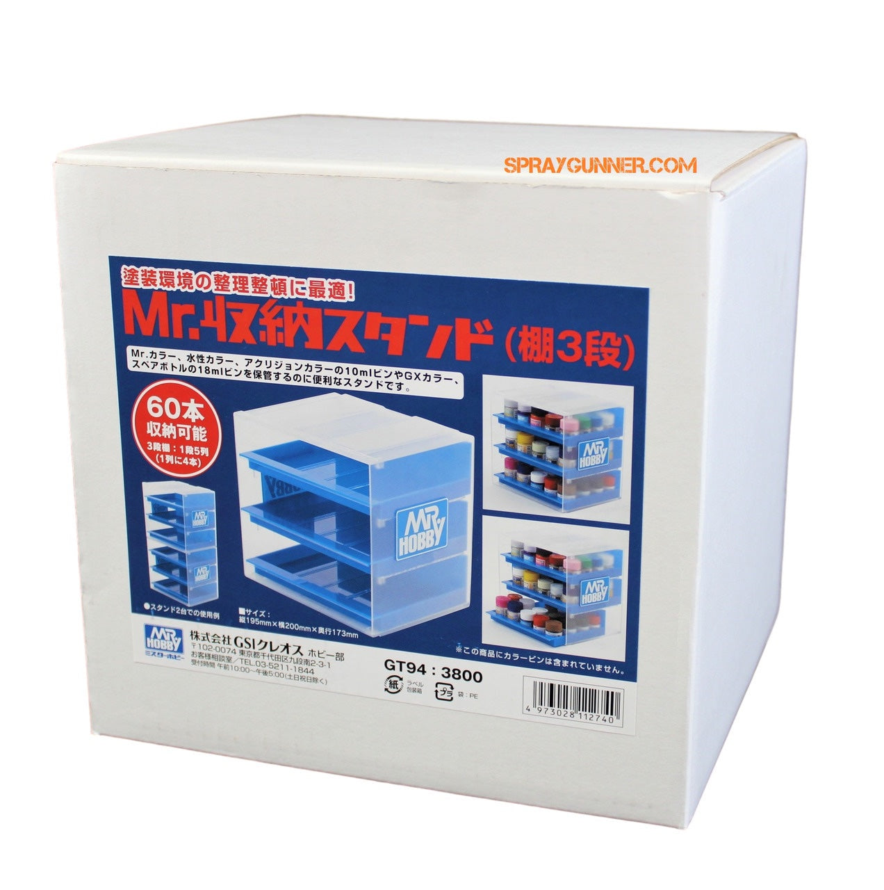 Here's a convenient stand for storing Mr. color, water-based hobby color, latex 10ml paint bottles, GX color, and spare 18ml bottles.