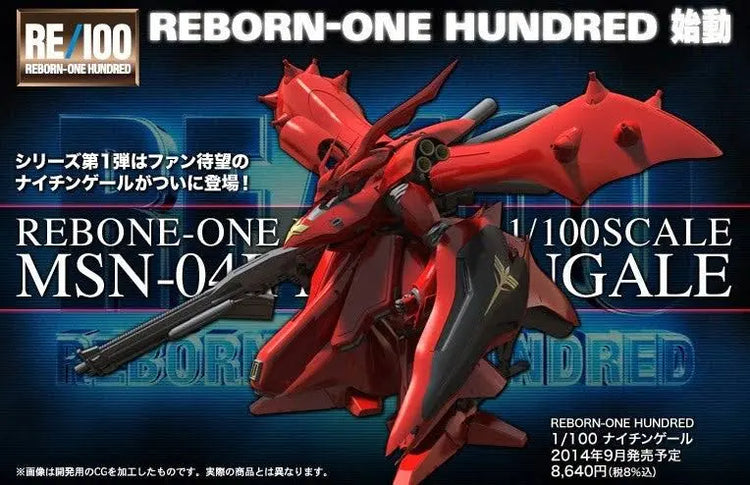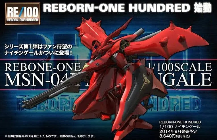 The first release of the brand new Reborn 100 product line is the massive Nightingale from the novel version of Char's Counterattack, Beltrochika's Children. This product line emphasizes detail as deep as recent Master Grade kits but with new iniection techniques including parts that are not attached to runners and also wedge gates for easier part removal.