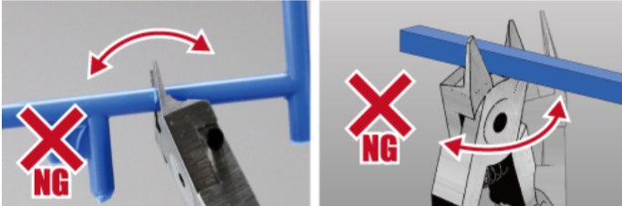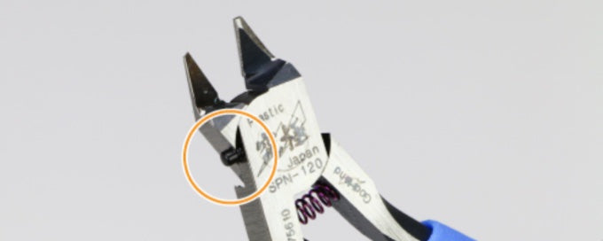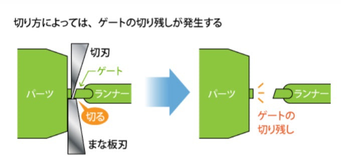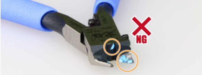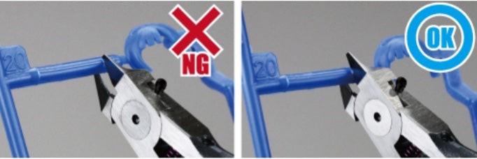 For people who paint plastic models, this is the best nipper to use because when they cut along the edge, it leaves no remains of the gate. It leaves with a clean cut section. This shortens the time spent on filing the gate.
