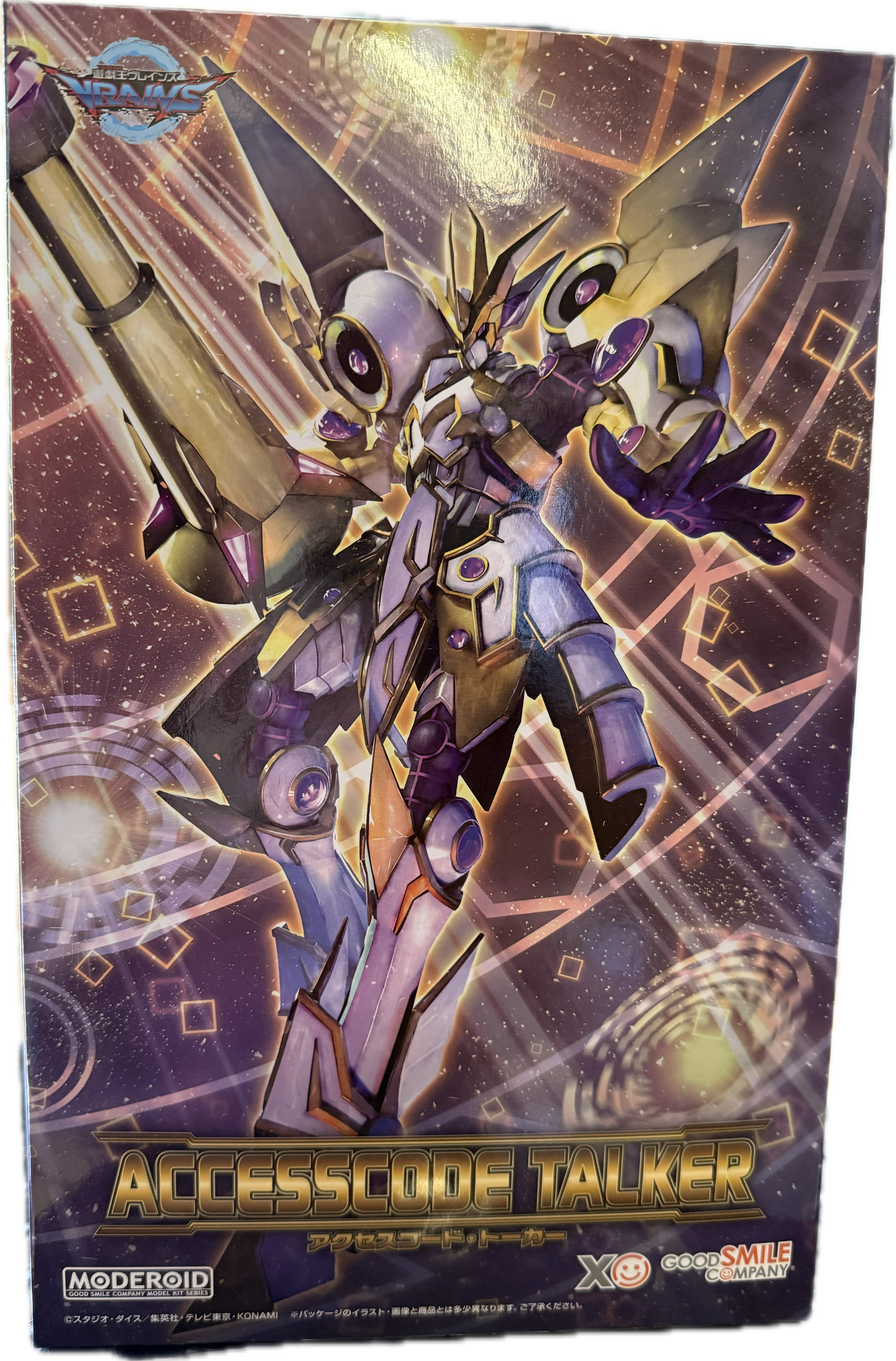 From the anime series "Yu-Gi-Oh! VRAINS" comes a MODEROID plastic model of the Link 4 Monster Accesscode Talker! This is the first-ever plastic model of the Accesscode Talker! The various parts of the monster have been separated into different colored runners and pre-painted parts, and the model kit also comes with stickers, making it easy to recreate the monster from the series with a simple assembly.