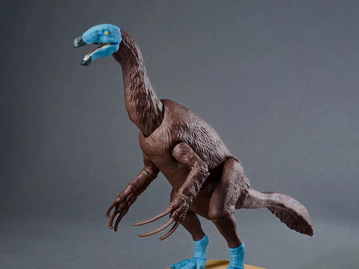 The Therizinosaurus is also detailed with three long, thin, and loosely curved claws that resemble those of sloths, adding another layer of authenticity to this extraordinary prehistoric model.