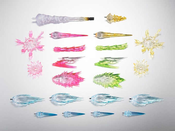 Expand your play and display possibilities with this second set of effects parts for Robot Spirits ver.A.N.I.M.E. figures. Powerful-looking thruster effects, including versions with jointed bases, plus high-output beam saber effects and more add drama to your displays! The Mobile Suit Gundam ver. 2 A.N.I.M.E. Robot Spirits Effect Parts Set inlcudes 4x extra large Vernier thruster effect, 2x Saber effects (A, B, C), 2x rifle effects (A, B), 2x flash effects, Machine gun effect (Large), Bazooka effect (Long), and 4x Posable Vernier thruster effect.