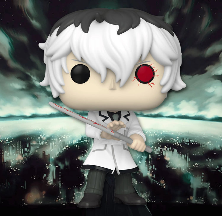 After being attacked Ken Kaneki is on the run and stuck between the worlds of humans and ghouls. Help Pop! Ken Kaneki, or Haise Sasaki, find where he belongs by adding him to your Tokyo Ghoul collection. Vinyl figure is approximately 3.75-inches tall.