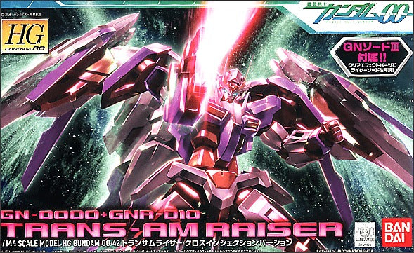 In the second season of "Gundam 00," the already powerful 00 Raiser gains unmatched firepower and speed when its Trans-am mode is activated, giving the Mobile Suit a pinkish hue. Molded in gloss color injection plastic, the Trans-am Raiser features flexible Twin Drive System (GN Drives on each shoulder), and 0 Raiser is detachable. Weapons include two GN Beam Sabers, two GN Sword II, detachable GN Shield, and a GN Sword III that can switch between Sword and Rifle Mode, and clear plastic beam part for its massive Raiser Sword Mode! A sheet of foil stickers and a clear green display base are provided. Note:The Action Base 2 Sparkle Clear Green display base shown in the photos below is not included, sold separately. Scale: 1/144 Item Size/Weight: 31.0cm x 19.1cm x 7.6cm / 400g Release Date: Apr 2009