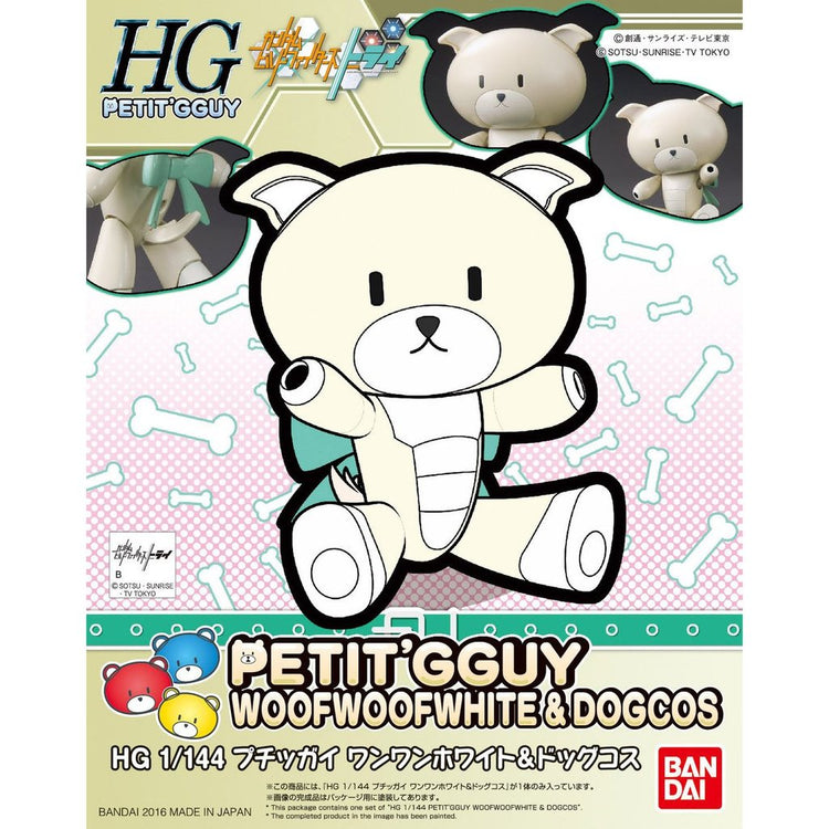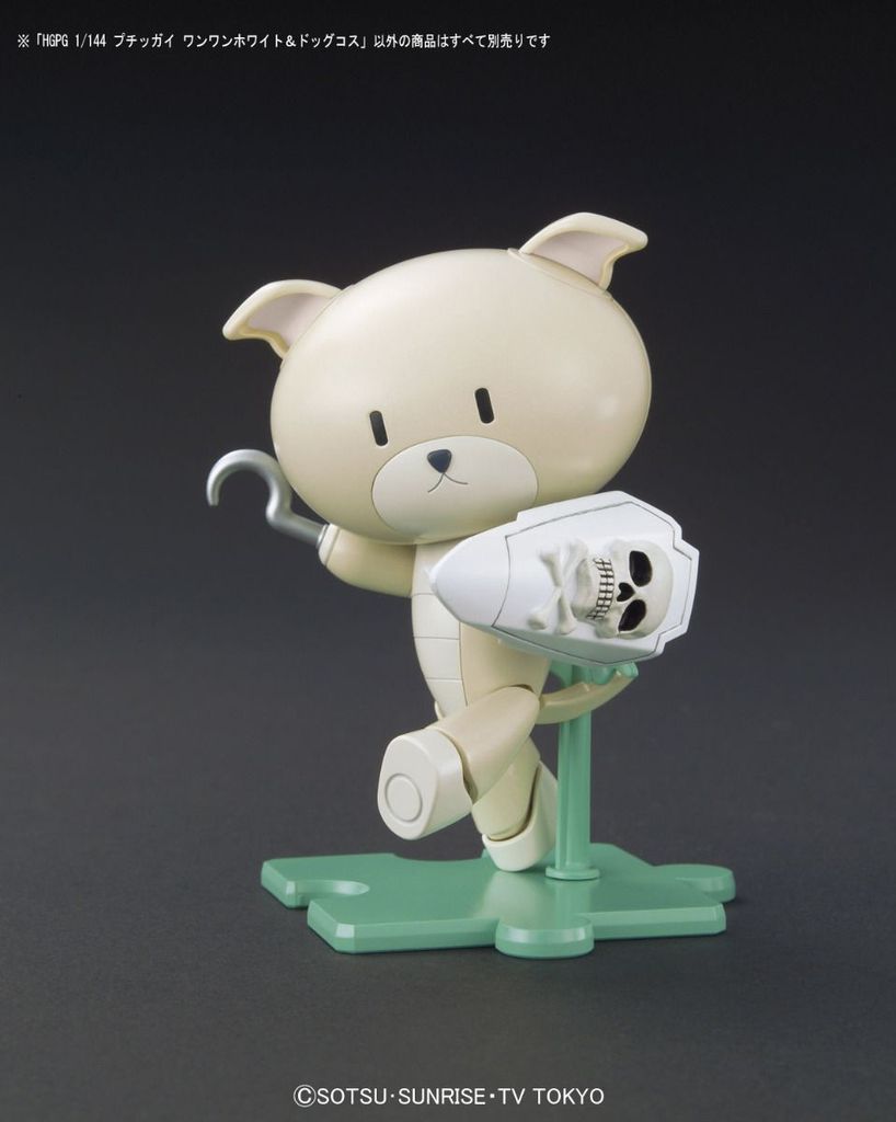 The lovable Petit'gguy is back with a new look! WanWan White includes the normal bear Petit'gguy parts, as well as optional ears, a tail and a mouth to dress him up like a dog! A display stand and sticker sheet are also included. Order today and expand your Petit'gguy family! Scale: 1/144 Item Size/Weight: 18.7cm x 15.0cm x 4.7cm / 100g Release Date: Dec 2016