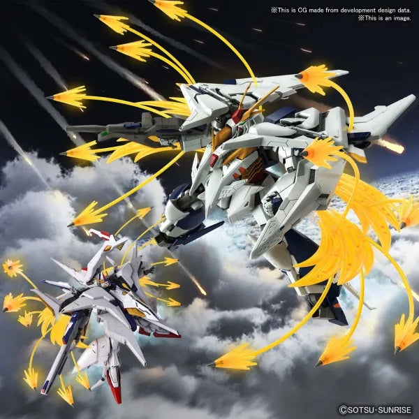A gigantic two pack of the Xi Gundam and Penelope from "Mobile Suit Gundam Hathaway" is here! In addition to the 2 very large mobile suits, Funnel Missile firing effects made of clear parts and 12 missile parts are included, enabling epic displays where the two Mobile Suits are facing off. The frames that hold the effect parts in place have multiple attachment points and can be used to recreate the random trail patterns left by the Funnels. New parts with intricate details are included to recreate combat scenes. Set includes: 2 display bases, funnels, funnel effects, 2 sets of foil stickers, and a set of water decals. Disclaimer to retailer: Package size is oversized