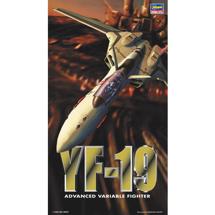 Kit of YF-19, the main machine of OVA "Macross Plus". The unique airframe form of the forward-swept wing has been three-dimensionalized while incorporating Hasegawa's unique aircraft expression. The parts configuration is relatively simple, and each part is designed to be assembled after assembling each block and painting. The cockpit is a selection formula of single seat / double seat. The canopy can be opened or closed, a seated pilot figure is included, and the vector nozzle is movable. The underside of the fuselage is designed based on the additional settings written by Mr. Kawamori! Hidetaka Tenjin is in charge of the package illustration.