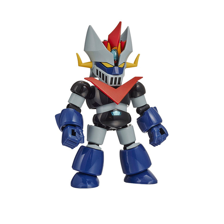 You can choose to assemble this kit of the mighty Great Mazinger in its Super Deformed or Cross Silhouette style! It’s molded in color so painting is not necessary, and assembly is easy. Marking stickers and its weaponry are included, as are the Scramble Dash and extra interchangeable hands. Please be aware that Cross Silhouette Great Mazinger only includes one frame, which can be rearranged into either SD or CS mode.