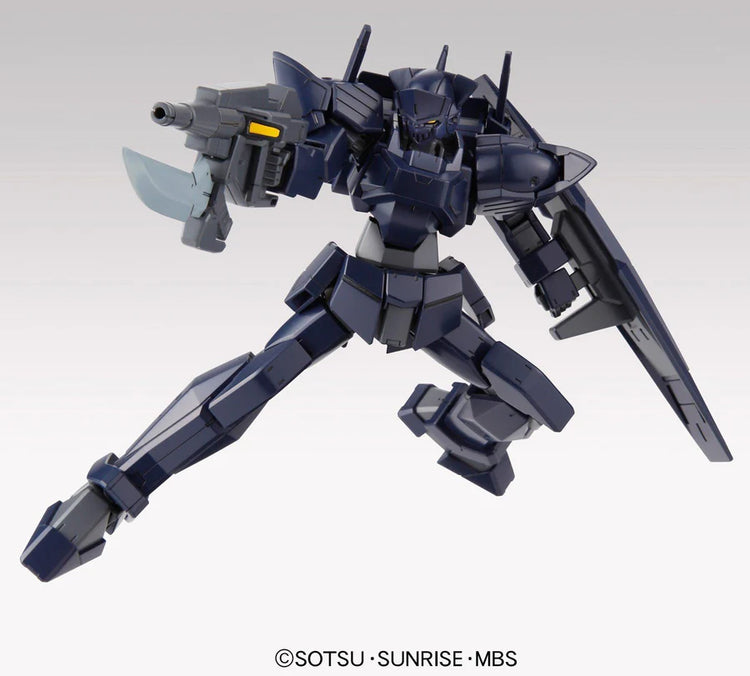 From the Gundam Age series, the HGAG G-exes Jack Edge makes its appearance in HG 1/144 scale. It is the Mobile Suit of the Space Pirates Bisidian, and features all the fun gimmicks of the suit in the anime! It comes with a shield and rifle with detachable bayonet that doubles as a sword, so you can get your swashbuckling fix from this kit! Effect parts are included for the beam saber, and the entire kit is cast in black for the extra badass look.