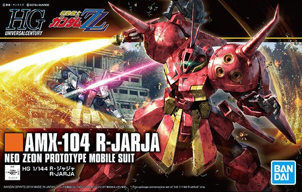 A prototype commander unit featured in ZZ Gundam, its hot color and proportion have been faithfully replicated while retaining an impressive range of motion. The ZZ Gundam #220 R-Jarja HGUC Model Kit includes beam rifle with heat bayonet, open palm, large beam saber, 12x runner, stickers, and instruction manual. Measures about 6-inches tall. Ages 15 and up.