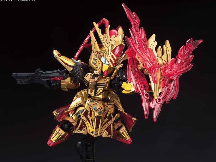 The military planner of Red Tiger, Zhou Yu supports Sun Jian with his battle tactics. Based on the Gundam Akatsuki, he has a special flame thrower that can combine with the shield to produce flaming wings, also known as Shiranui Mode.