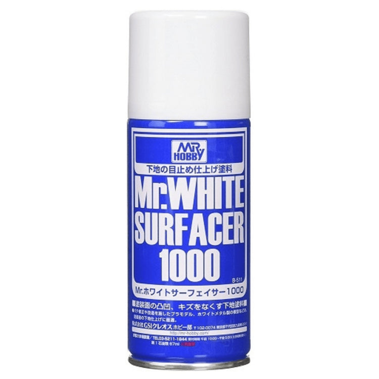 Since it is white, Mr.White Surfacer 1000 Spray is used to modify plastic model parts that are black or dark in color. If this is used on the entire model, only a thin overcoat of paint in the desired color is necessary.