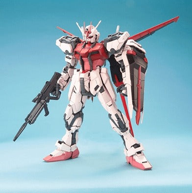 Gorgeous! Bandai's Perfect Grade line continues with Gundam Seed's "Strike Rouge," superbly molded in coloured plastic, with the same fantastic construction quality demonstrated in previous PG kits. A whopping number of parts are included in the typically-large (and heavy!) box -- besides the Strike Rouge, there are parts included for the Skygrasper and Aile Striker! Metal-plated parts (in pink!) are included for the Strike Rouge's custom weapons. Screws, springs, fabulous Gundam Stickers and dry-transfer decals are included; two construction manuals (one for the Strike Rouge, one for the Skygrasper and Aile Striker) are included to walk you through the building of all three models. An "instruction manual" is also included for those who like to paint their Gundam models (of course it doesn't need to be painted), and also for indicating precise locations of the markings. Scale: 1/60 Item Size/Weight: 63.0cm x 40.2cm x 13.4cm / 2940g Release Date: Aug 2005