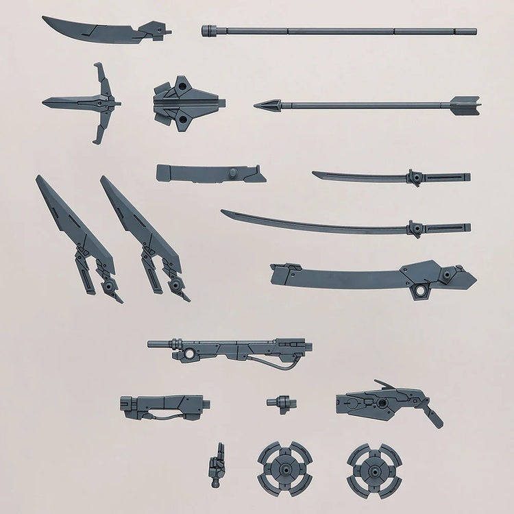 Now this is some good 30MM! This jam-packed expansion weapons set based around the Sengoku theme comes with a TON of stuff! included are a bow, arrow, sword, short sword, scabbard, short scabbard, rifle, 2 rifle expansion parts, blade, spear handle, 2 spear blades, and Wraith phase shift hand!