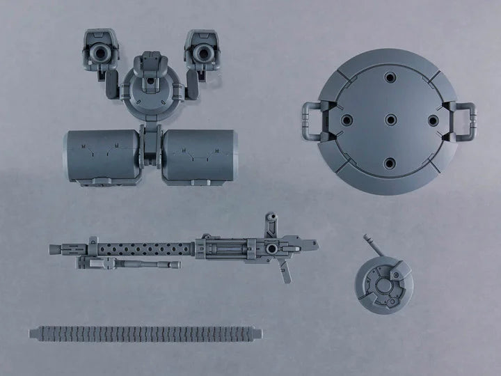 Radome and Rifle can be connected to the backpack. The rifle has a moveable bipod. Barrel parts of the gun (not included) can also be connected. The link belt is made of soft materials and can be attached to the backpack.