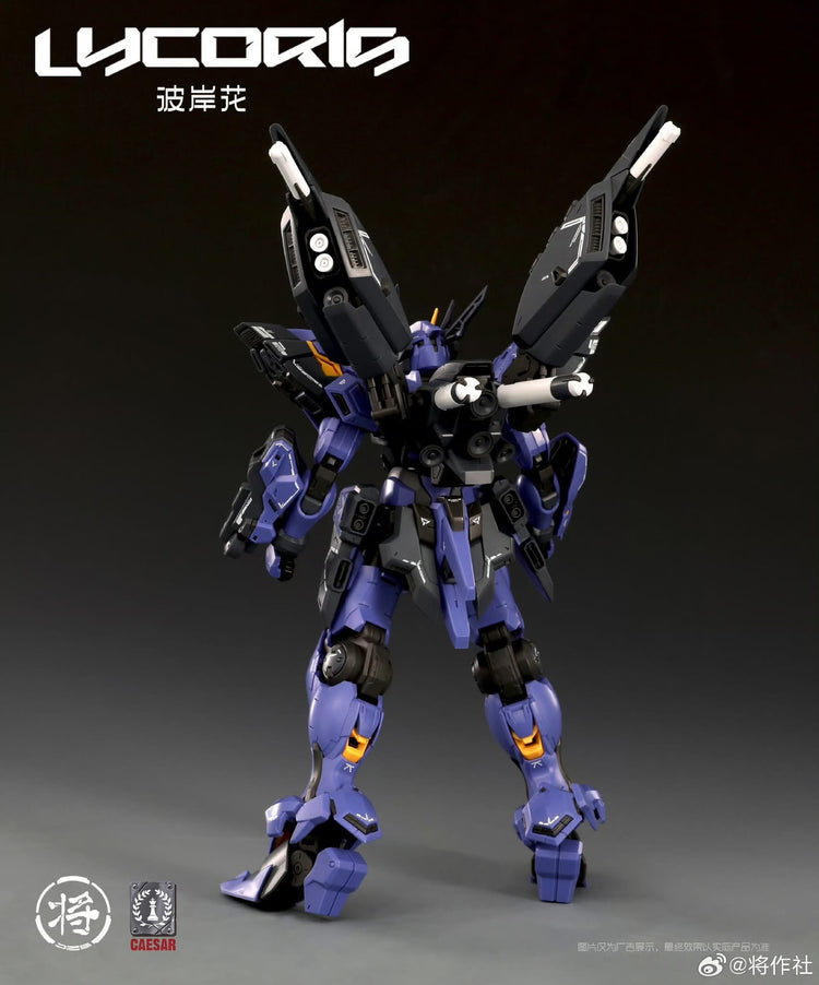 The successor to the Mandala model kit has arrived. The Lycoris model kit features new coloring and weapons. The Anti-Matter cannon opens up and features effect pieces allowing multiple posing options.