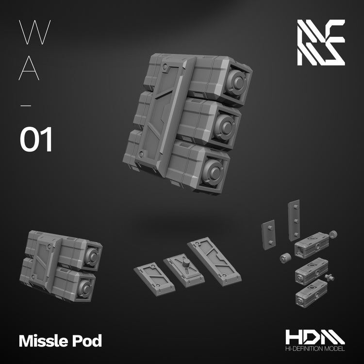 Includes modular Missile detail for mecha models. Includes unique bridge pieces and pegs to string missile pods together to form larger arrays of destruction. Compatible with any 3mm peg system. (May require drilling and modification).