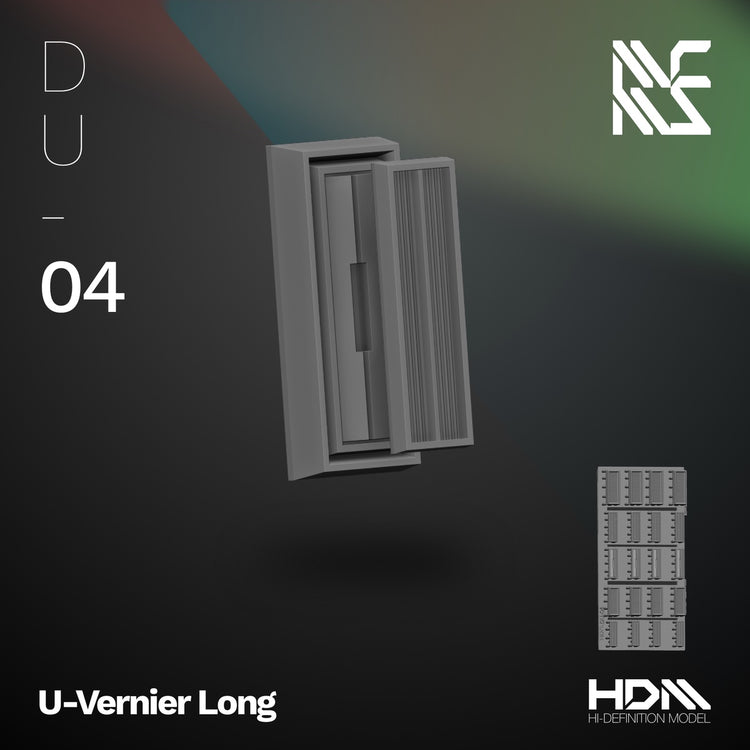 Includes modular vernier detail for mecha models and diorama pieces, includes different sizes and shapes for increased compatibility. Compatible with DU-03.
