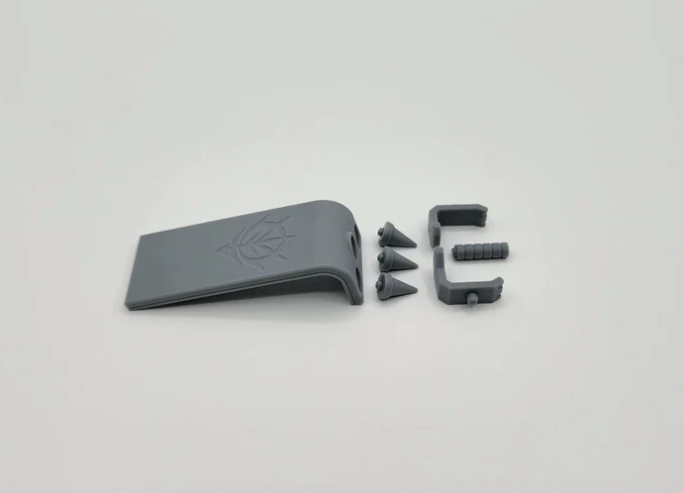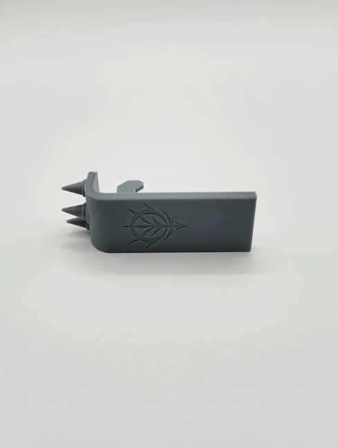 Weapon is made from 3D printed resin. Kit is separated into 7 individual pieces and requires some assembly (Superglue recommended for final assembly). Optional handle piece is provided to allow for the shield to be held in the left or right hand.