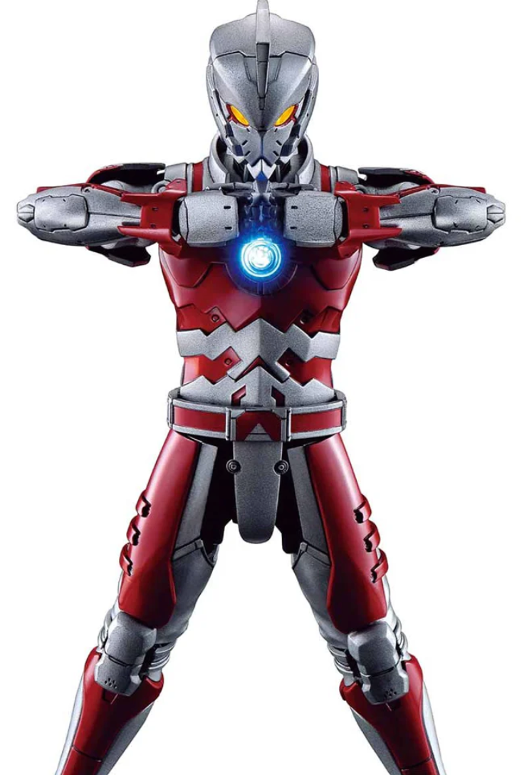 Ultraman Suit A from the comic "Ultraman" joins Figure-rise Standard! An extra finish has been applied to its surface, and gloss-injected parts recreate the textures. A dedicated LED unit is included which can light up both the Color S.S.C. Generator in the chest and eyes in two colors. Gauntlet weapon parts are unique to the model kit version designed by the writer of the comics, Eichi Shimizu, and are also included. Vertical Guillotine Effect part, beam generator, and display base included. Runner x 9, stickers, LED Unit, Instruction Manual.