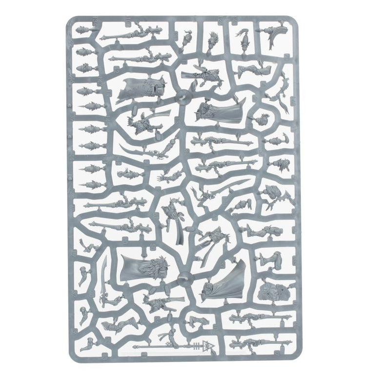 This multipart plastic kit allows you to build 10 Corsairs, cunning Aeldari pirates armed with esoteric wargear. These miniatures can be used as Corsair Voidscarred operatives in games of Kill Team, or fielded with Aeldari and Drukhari armies in games of Warhammer 40,000 as a unit of Corsair Voidreavers or Corsair Voidscarred. This eclectic group of rogues contains one Felarch and nine Corsair Voidscarred, each of which can be equipped with a variety of weapons, heads, and accessories, or assembled as specialists for your Kill Team – including the Way Seeker, Soul Weaver, Shade Runner, and more.