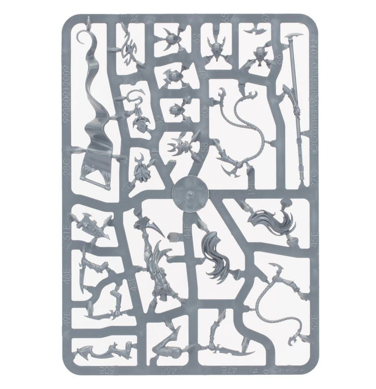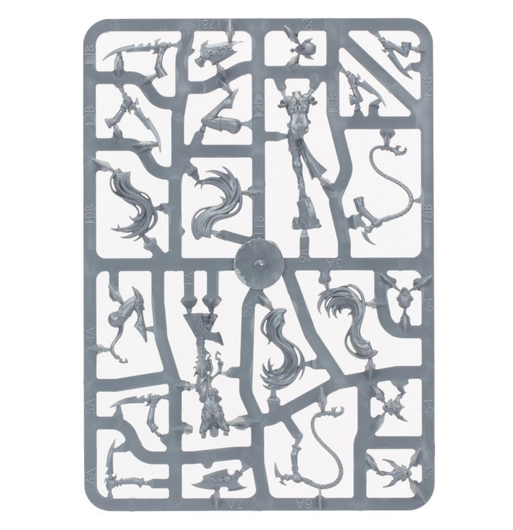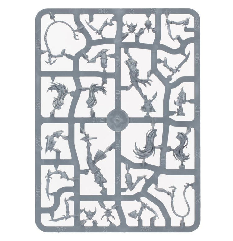 The Witch Aelves come as 134 components, and are supplied with 10x Citadel 25mm Round bases and a banner transfer sheet. This kit can be optionally used to assemble 10 Sisters of Slaughter.