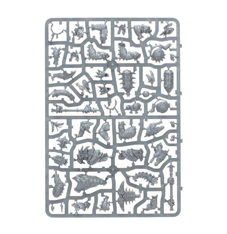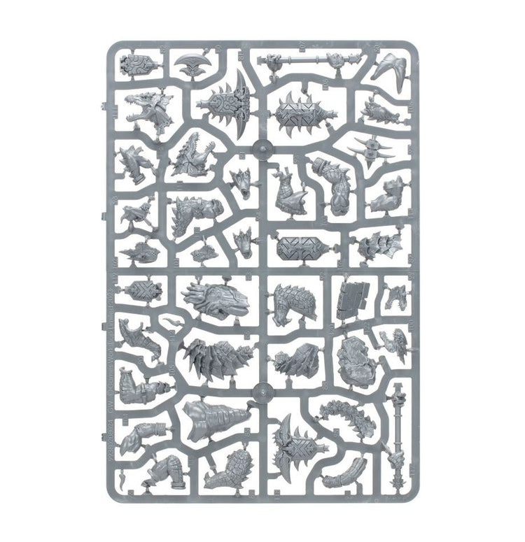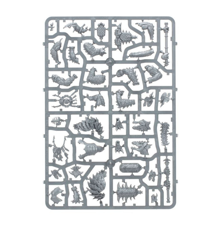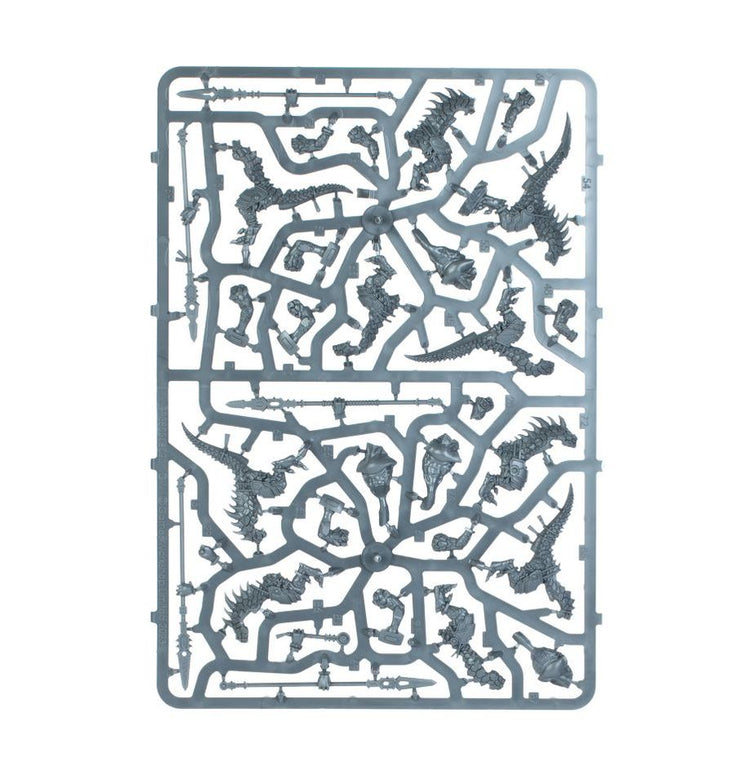 – 1x Saurus Oldblood on Carnosaur with 1x Saurus Oldblood on foot, which can also be built as a Skink Oracle on Troglodon with a Saurus Oldblood on foot, or a Saurus Scar-Veteran on Carnosaur