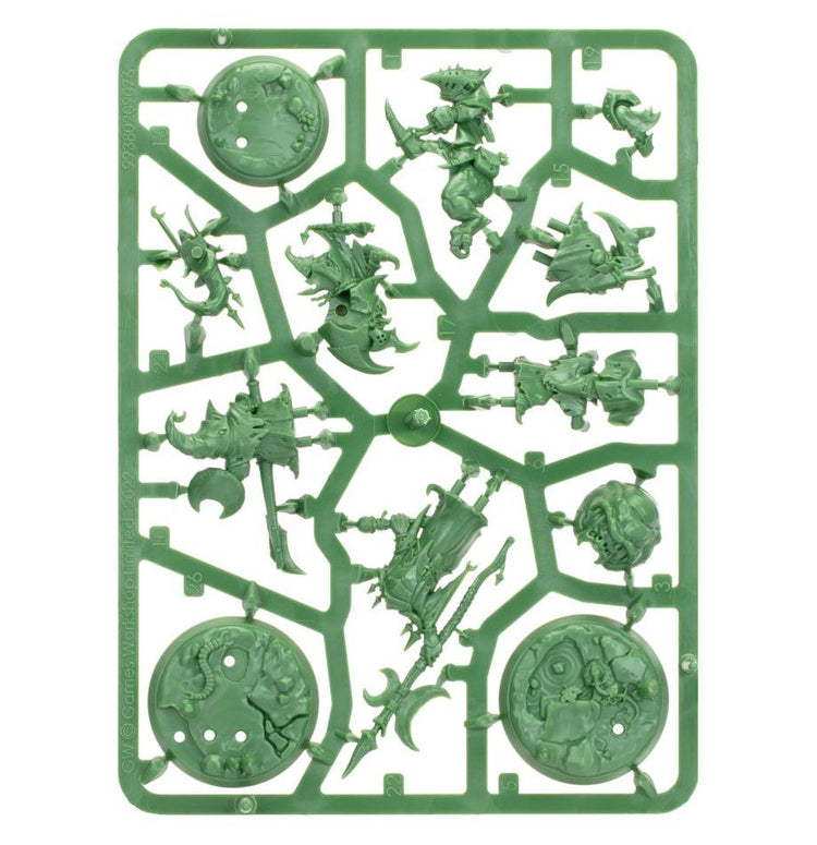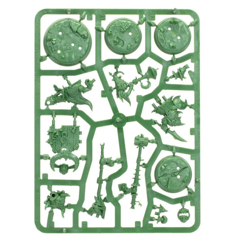 - 7x push-fit Grinkrak’s Looncourt miniatures – no glue required to assemble, cast in gloomy green plastic to stand out even when unpainted
