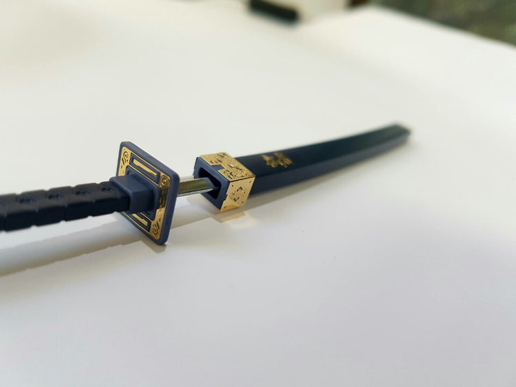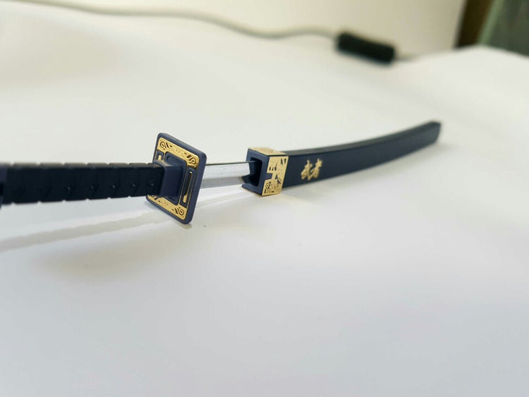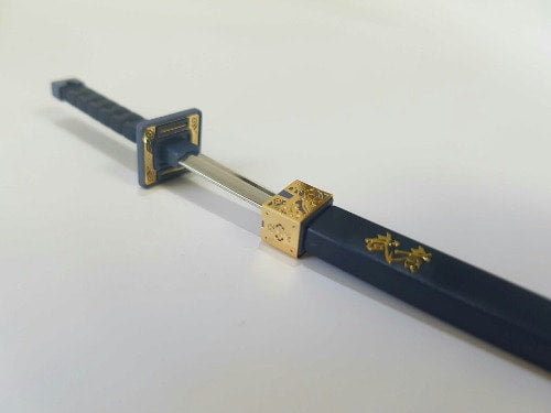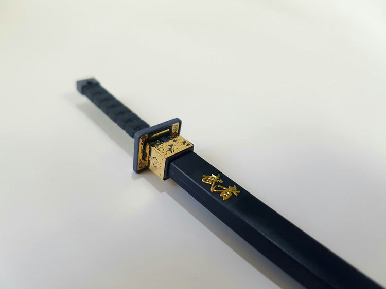 The metal sticker that attaches to the base of the sheath handle is shaped like 一.