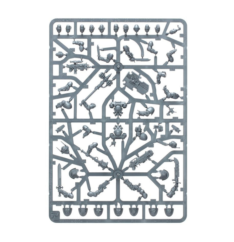 This multipart plastic kit builds five Deathwatch miniatures. These miniatures can be used as versatile Deathwatch operatives in games of Kill Team, or fielded in Space Marine armies in games of Warhammer 40,000. The flexible kit includes weapon options and accessories to customise each miniature, plus components to build specialists like the duelling Aegis, brutal Demolisher, and stealthy Headtaker.